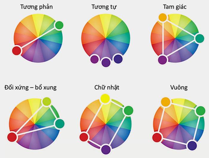 Tứ giác (Tetradic): 4 màu tạo thành hình chữ nhật → dành cho người đã “lành nghề”.