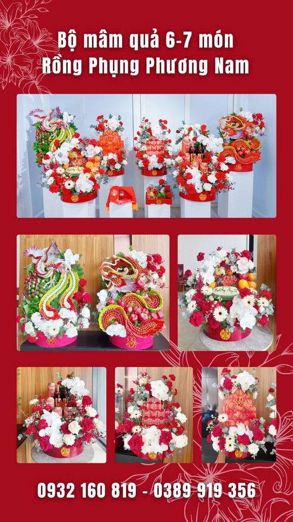 Bộ tráp/ quả cưới 6 - 8 món tone màu đỏ - trắng cho lễ cưới/hỏi theo phong tục từng vùng/miền